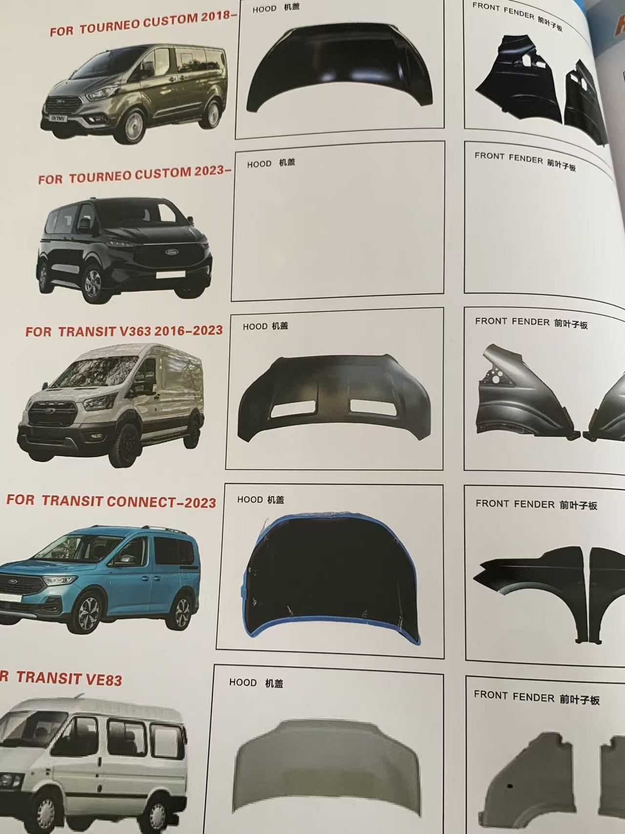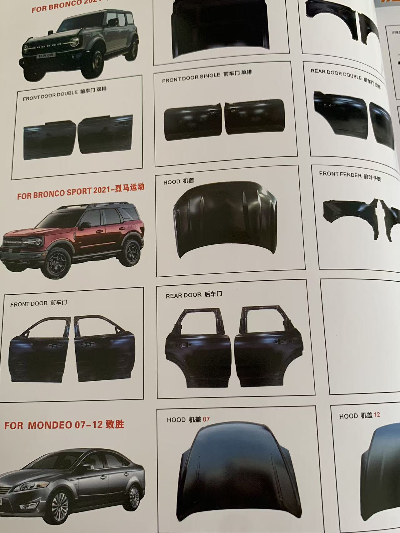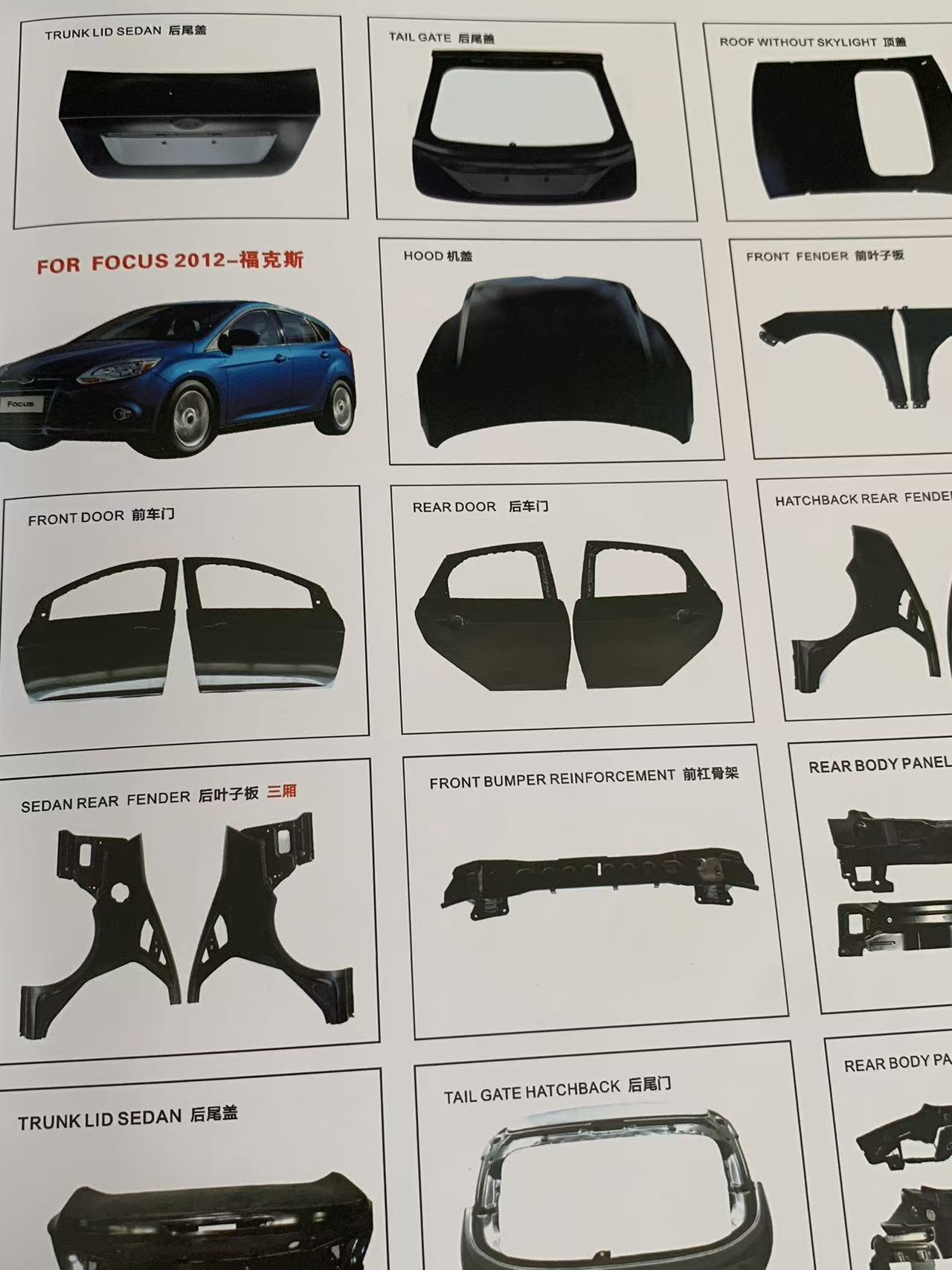 | لوحات الجسم | مجموعات المصد الأمامي والخلفي (بما في ذلك الإصدارات الرياضية/للطرق الوعرة)، والشبكات، ومجموعات وألواح الأبواب، والرفارف، والأغطية، وأغطية صندوق السيارة، والعتبات الجانبية، وأقواس العجلات |
