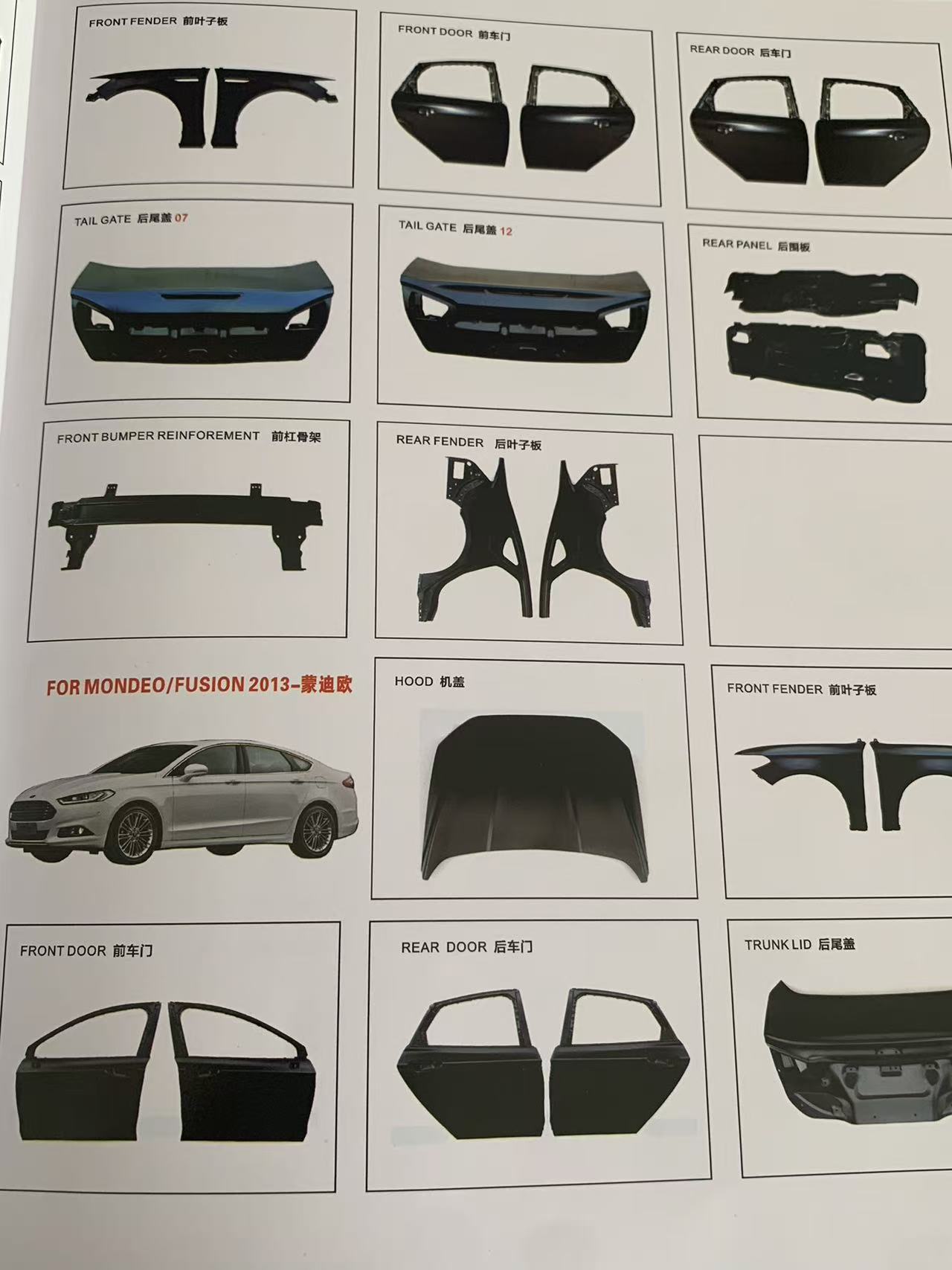 - الأجزاء المتوفرة: مجموعات المصابيح الأمامية (بما في ذلك LED)، مجموعات المصابيح الخلفية، مصابيح الضباب، إشارات الانعطاف، المصدات الأمامية والخلفية، الشبكات، مرايا الرؤية الخلفية، اللوحات الطينية، أقواس العجلات، ألواح الأبواب، أجزاء الهيكل، أنظمة الفرامل، أنظمة التعليق، ملحقات المحرك، مشعات ناقل الحركة، إلخ.
